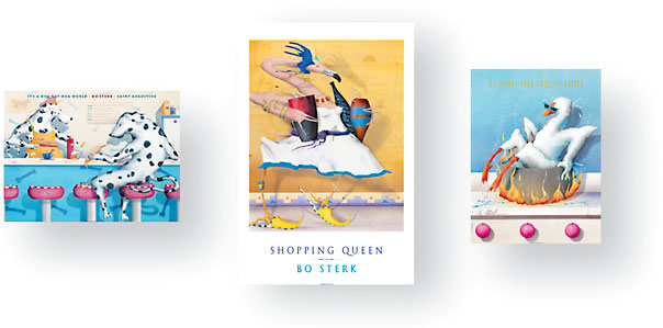 Fine-art series of lithographic reproductions featuring whimsical images by Bo Sterk, 1997: Developed the project, selected the images, and designed the posters and catalogs. Click for samples.