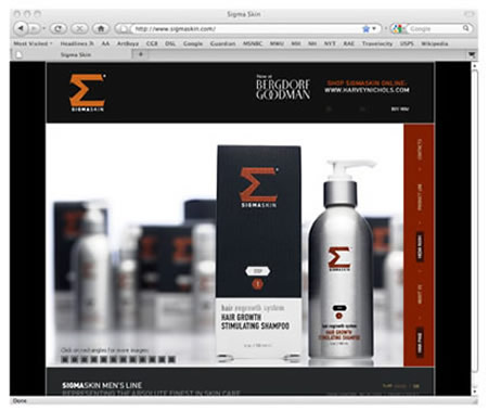 Text and design to market premium cosmeceuticals for Sigma Skin, 2008 to 2014: Targeted men who shoped at upscale department stores such as Neiman Marcus and Harvey Nichols. Click for samples.