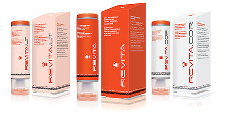 Managed hundreds of legacy box and label files, in multiple versions customized for international markets, while designing the next generation of packaging. Shown here are prototype boxes and labels from the Divine Simplicity Project. They feature new, more standardized designs featuring simpler graphics and text for simpler customization, production and sales. Automatic-assembly features were engineered for simpler fulfillment. Click for a PDF of the Revita layout.