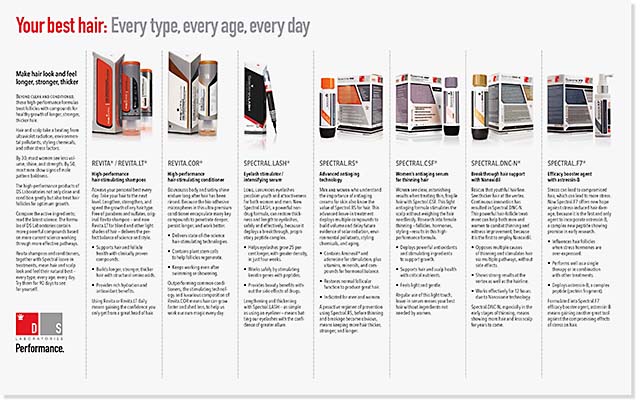 Wrote and designed less-technical, higher-volume catalogs for salon stylists and their clients. The 16-page booklet shown here covers 21 SKUs — from shampoos to specialty cleansers to leave-in treatments for hair growth — plus several sidebars. It ran from 2011 to 2014. Click to read the PDF.