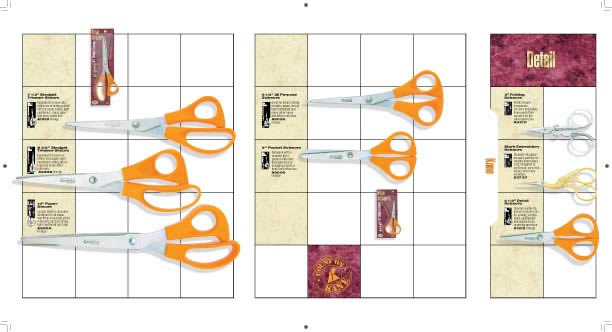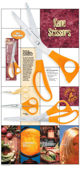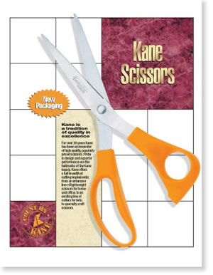 To work with the folder system above, designed several targeted catalog sheets covering specialty lines of Kane scissors.