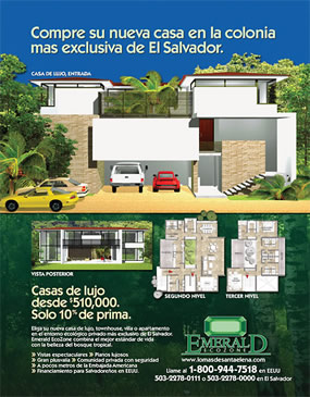 LOMAS DE SANTA ELENA Ads and collateral materials for a major real estate development in El Salvador, 2006: Designed and produced PoP catalogs and airline in-flight ads targeted to returning Salvadorans. Click for the PDF of a sample ad.